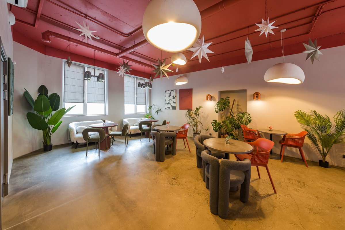 Вас ожидает стильный дизайнерский интерьер, авторская кухня, интересное меню напитков. Здесь можно питательно позавтракать в любое время, вкусно пообедать, спокойно поужинать в любимой компании, будь то коллеги по работе, друзья, семья. Кроме того, в кафе проводятся концерты и гала-ужины — вам не дадут скучать, а чуткий персонал окружит заботой и вниманием, стараясь исполнить все ваши пожелания.